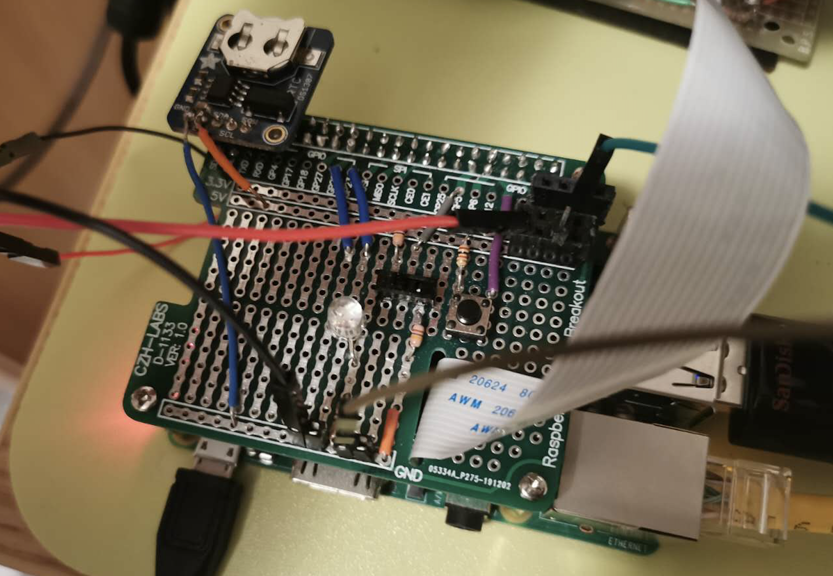 The system is mainly consisted of two rasberry pi and two cameras. Each pi has a RTC clock to preserve synchronized time and a USB flash drive to store images for later processing. The box is a laser-cut wood board and there's a transparent tunnel made of laser-cut acrylic. The LEDs inside the tunnel are covered with thin tissue paper for the purpose of diffusion. Ethernet cable is used for UDP and NTP protocols. A push button connected to GPIO 13 is used as callback function to exist the program.