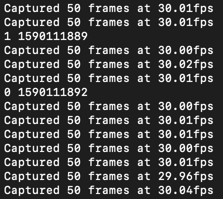 Next step is test our Sender is working properly and send the data as we expected. From the image below we can clearly see that the camera is idling at the speed of 30 fps and 1 is sent through UDP to the Receiver. The following number is the date when the number is sent